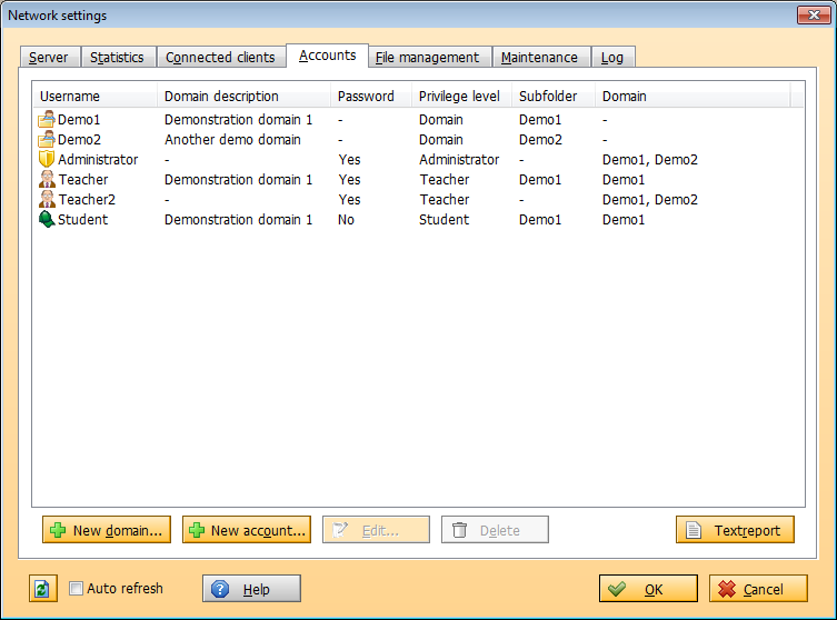You need to install RekenTest Server to use the software in a network. The server handles client connections, provides central data storage and manages groupsessions. A demo is available in the standalone version. Extensive documentation is available online. The software is available in four languages: Dutch, English, Spanish and Portuguese. You need to download and install the software on your computer before you can use it.